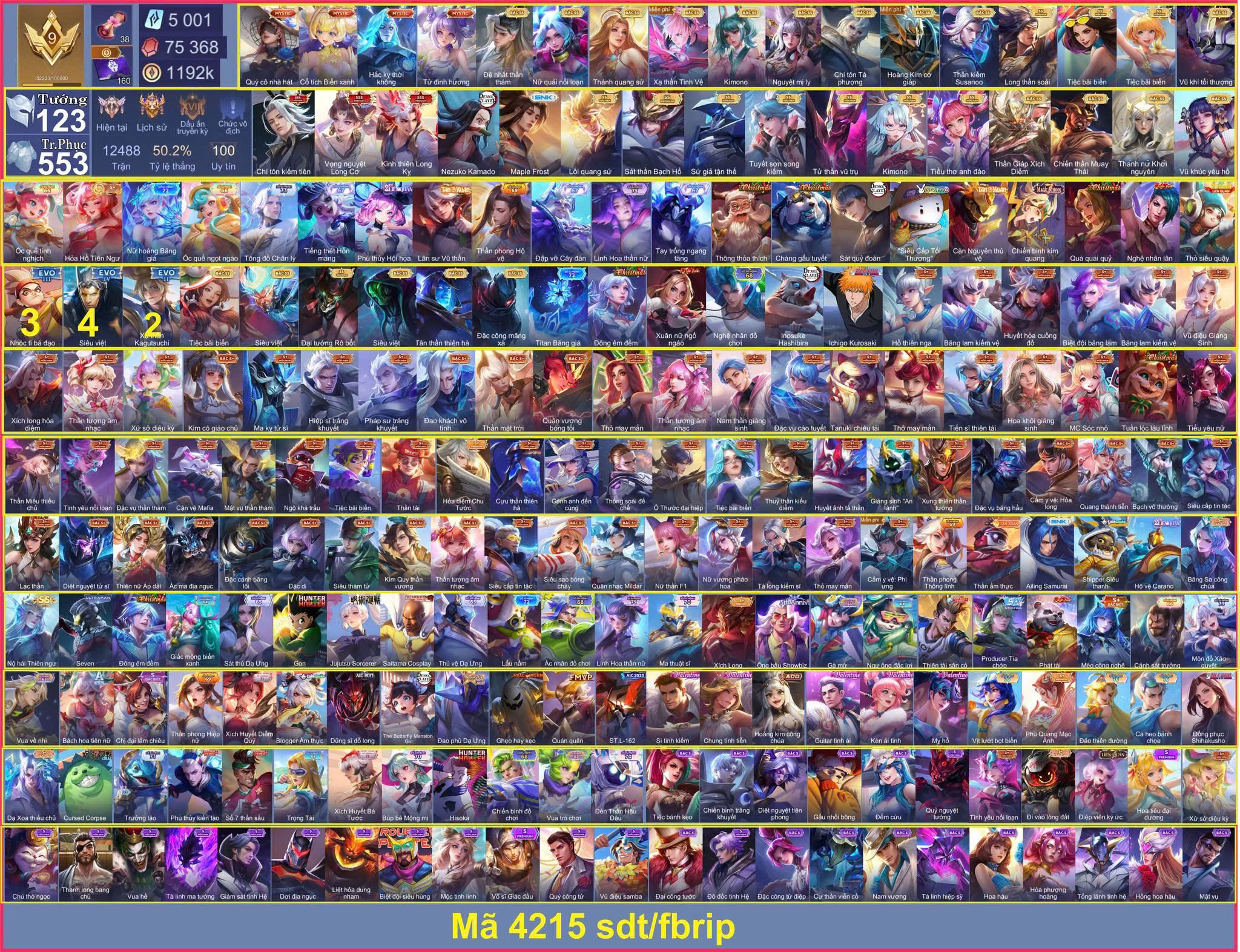 DANH MỤC: Mua Nick Liên Quân Trên 2M